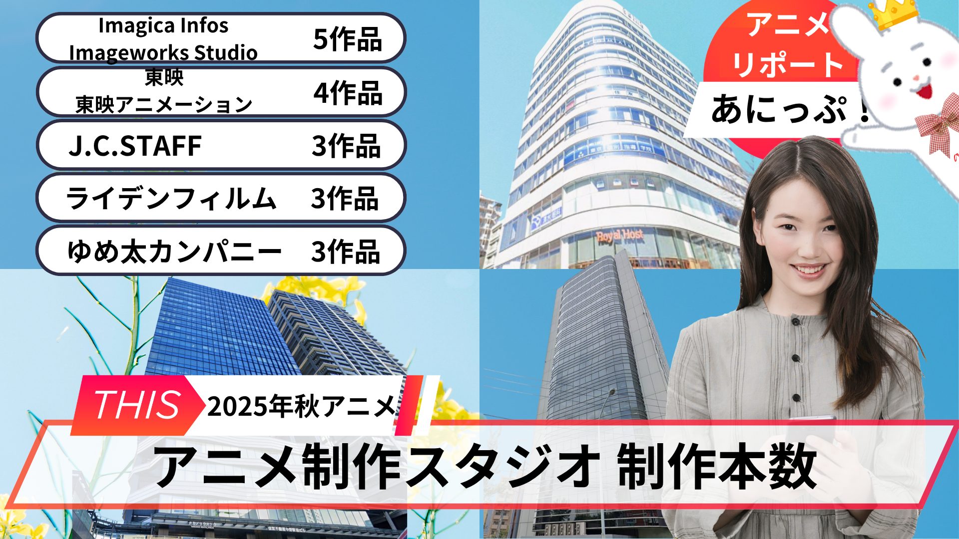 2025年秋から始まるアニメ90作品の制作スタジオを調べて、どこが制作本数が多いのか纏めてみました。