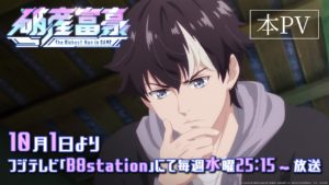 | 放送 | 最速放送▶TOKYO MX:10月5日より 毎週日曜21:30~ BS11:10月5日より 毎週日曜22:30~ ABCテレビ:10月8日より 毎週水曜26:45~ |